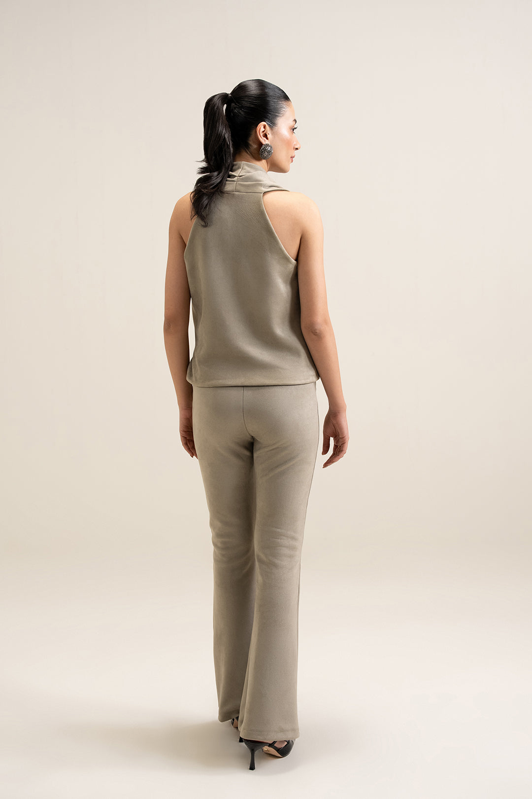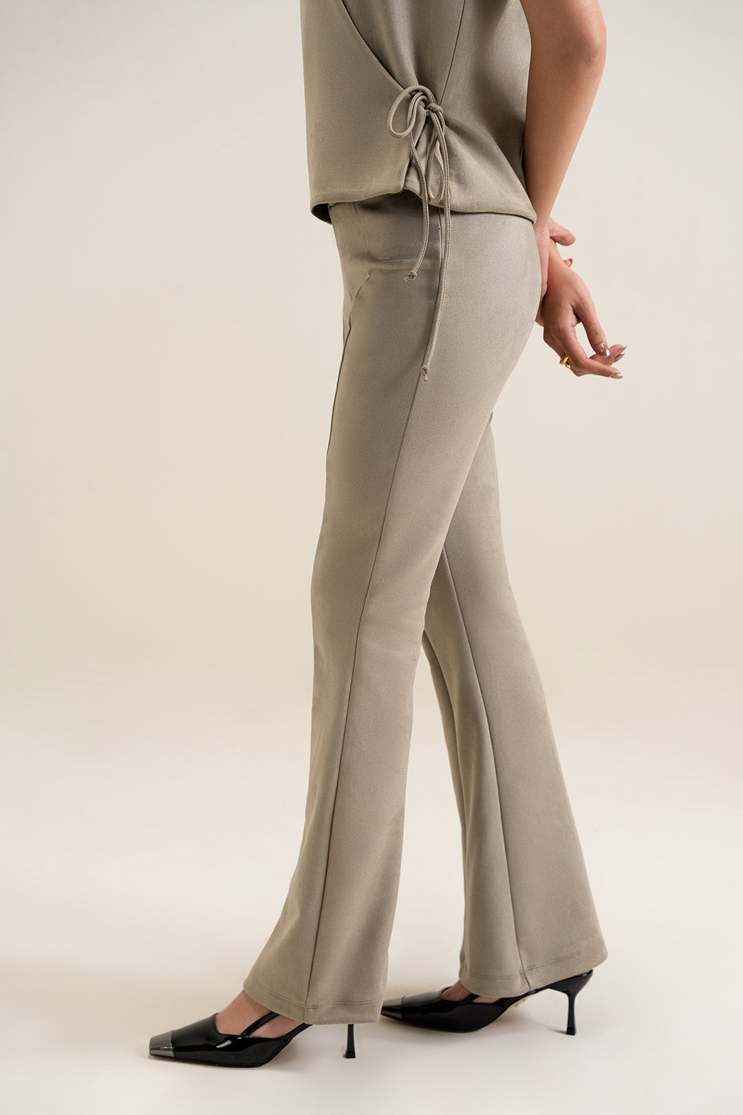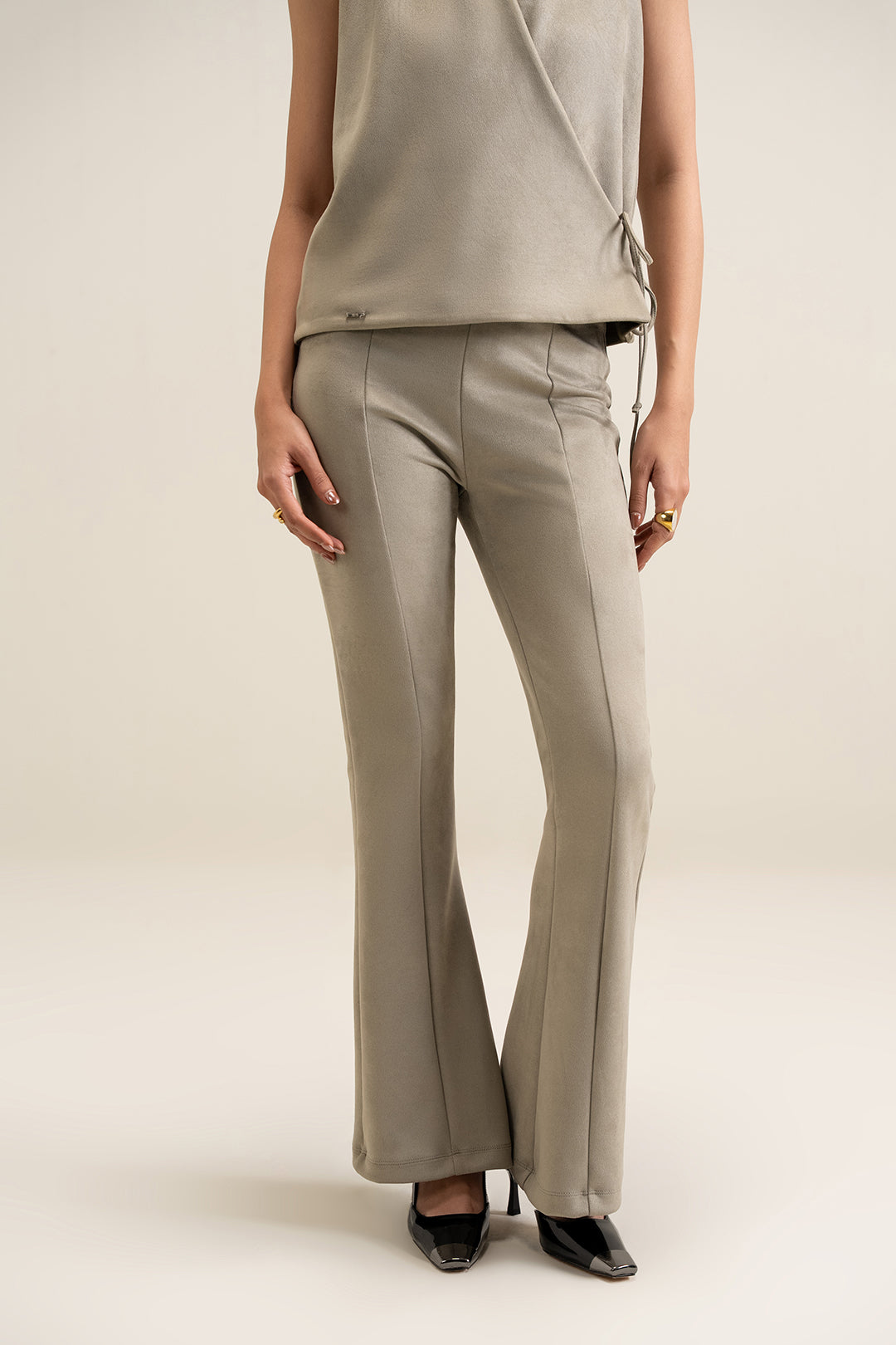 Suede Bootcut Pants - Silver Grey